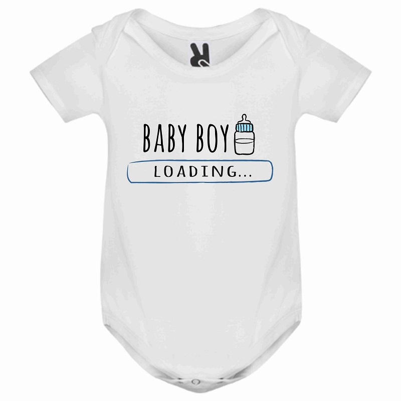 Babystrampler weiß Baby Boy mit Flasche