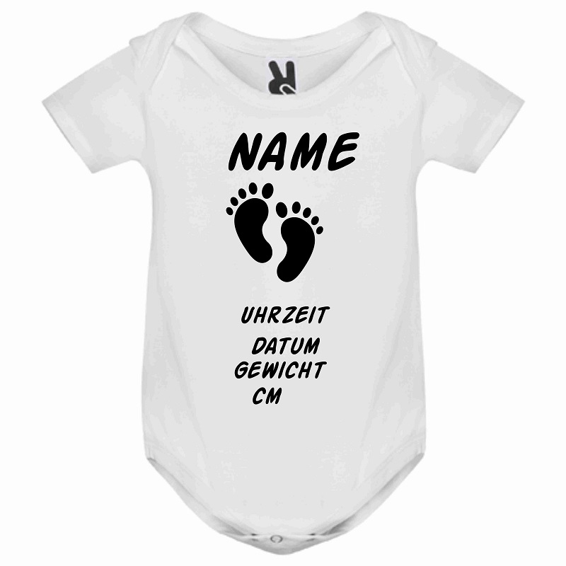 Babystrampler weiß-schwarz Name, Gewicht, Größe, günstig kaufen