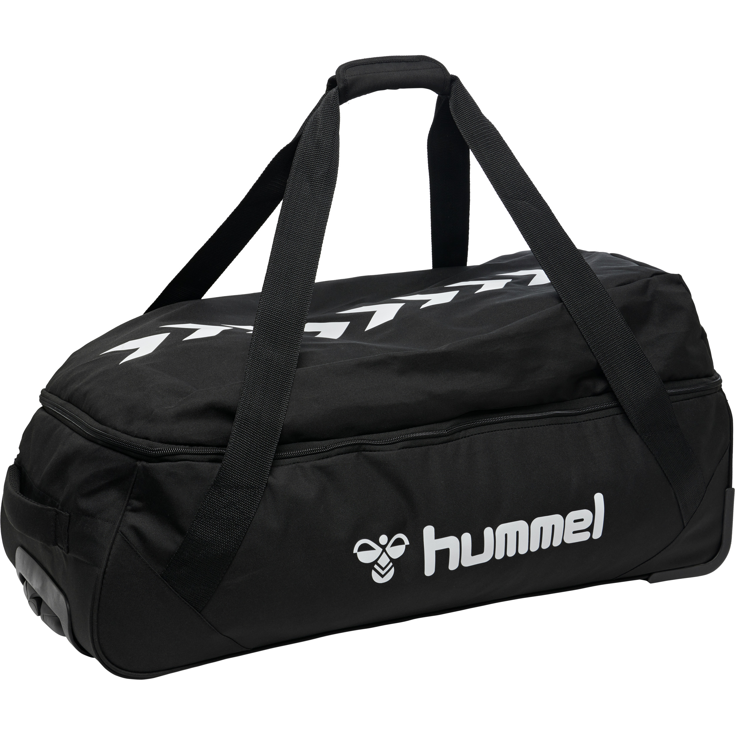 Der CORE TROLLEY ermöglicht eine einfache Mobilität durch die Verwendung seiner gepolsterten Griffe (nur Größen Mittel/Groß), eines ausziehbaren Griffs und zweier Räder am Boden für ein einfaches Gleiten. Die hummel® Trolleytasche ist aus einem gewebten Stoff gefertigt, um die Festigkeit, Leistung und Haltbarkeit zu verbessern. Die Innenseiten sind mit Mesh-Fächern versehen, damit der Inhalt jederzeit organisiert bleibt. Gedruckte Winkel und ein Logo unterstreichen das Design, während ein Reißverschluss an den Seiten für sichere Aufbewahrung und Schutz sorgt.