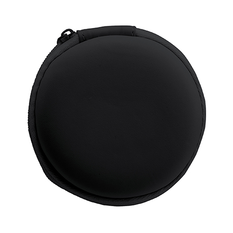 Kabellose Kopfhörer mit Bedienfeld und integriertem Mikrofon. Präsentiert in einem praktischen Kunstleder-Etui mit Reißverschluss. Wiederaufladbare Batterie. Inklusive Kabel.