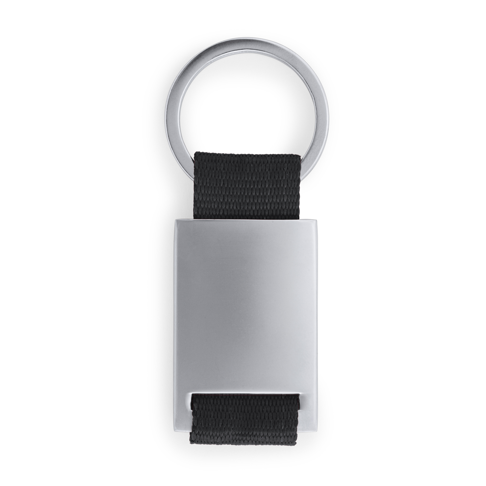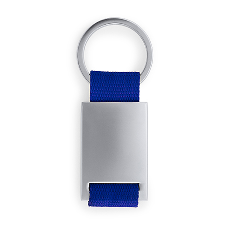 Schlüsselanhänger aus Metall mit farbiger Polyesterlasche.