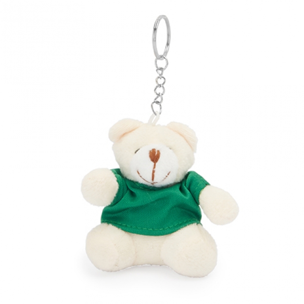 Schlüsselring mit Teddybär in farbigem T-Shirt aus weichem Polyester.