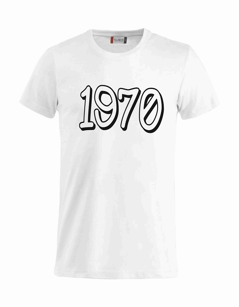 T-Shirt Druck 1970, weiß-schwarz, günstig kaufen