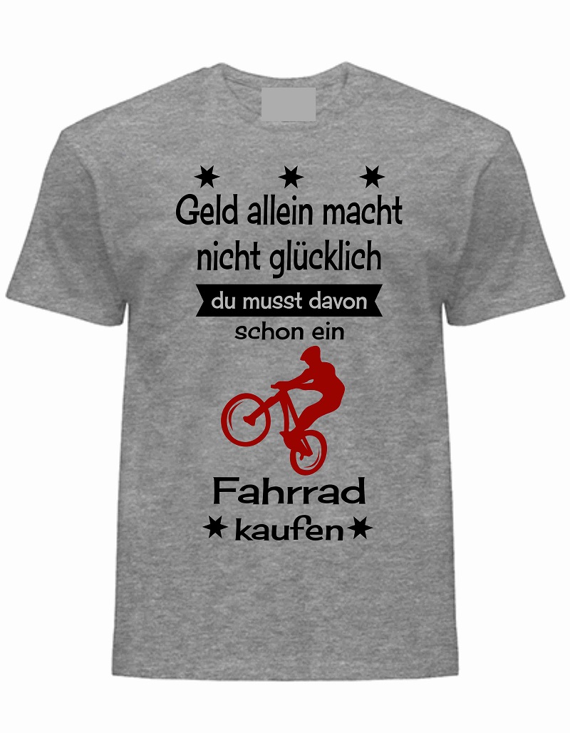 T-Shirt Geld alleine macht nicht glücklich, grau-schwarz-bordeaux