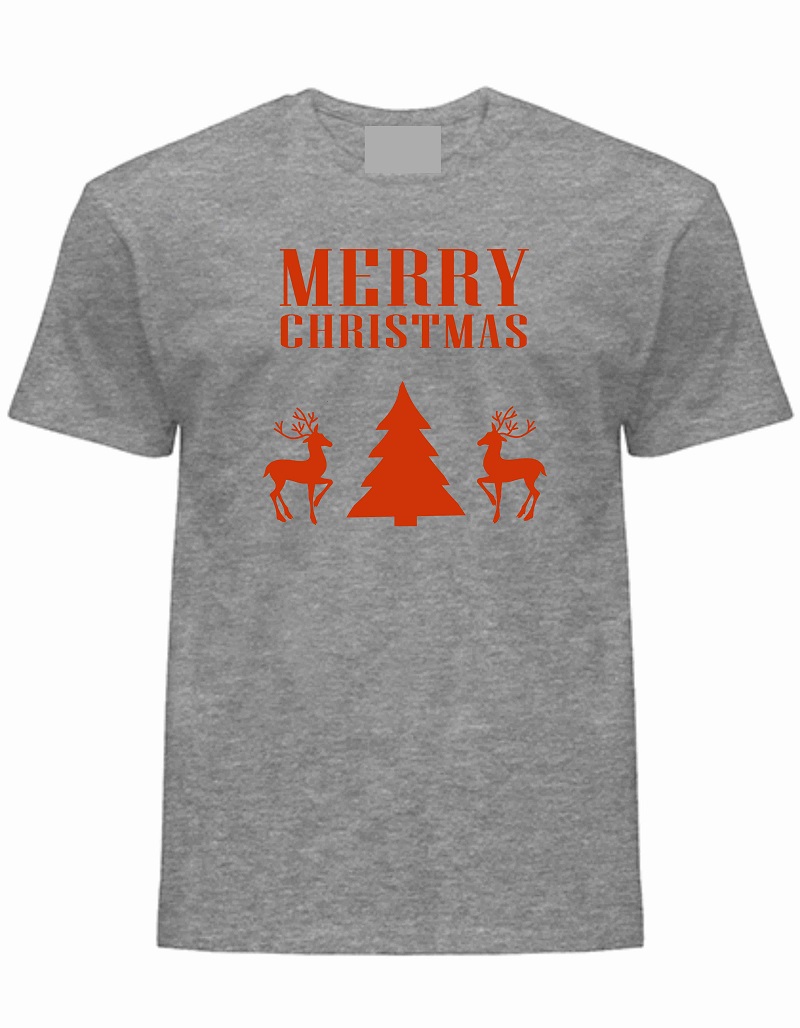 T Shirt Merry Christmas Rentier grau-bordeaux, günstig kaufen