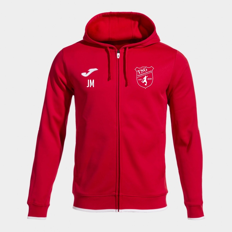 Sie verfügt über einen durchgehenden Reißverschluss, eine verstellbare Kapuze mit Kordelzug und ein elastisches Innenband, um die Passform zu optimieren und mögliche Reibestellen zu verhindern. An den Ärmeln und am Saum ist sie mit Rippbündchen versehen. Ausgestattet mit zwei vorderen Taschen ohne Reißverschluss, um kleine persönliche Gegenstände zu mitzunehmen.