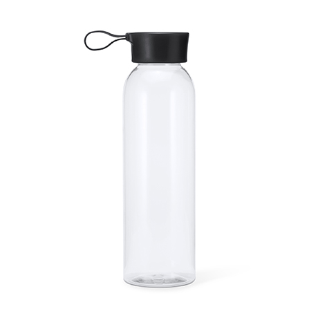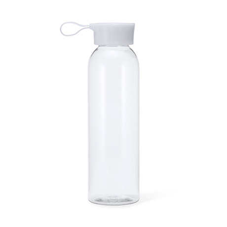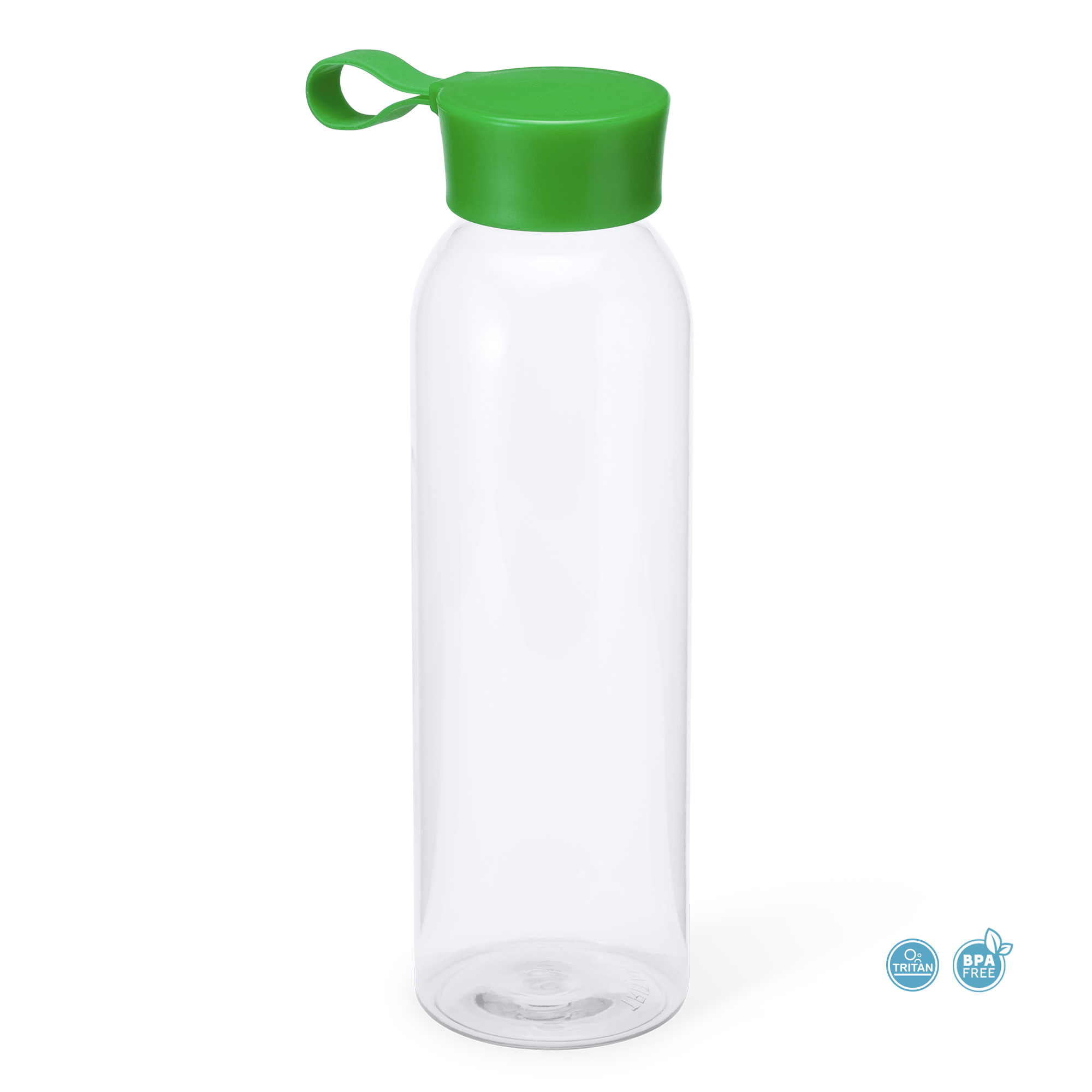 Trinkflasche 600ml aus Tritan. Kappe mit farbigem Trageriemen. Präsentation in Design-Box.