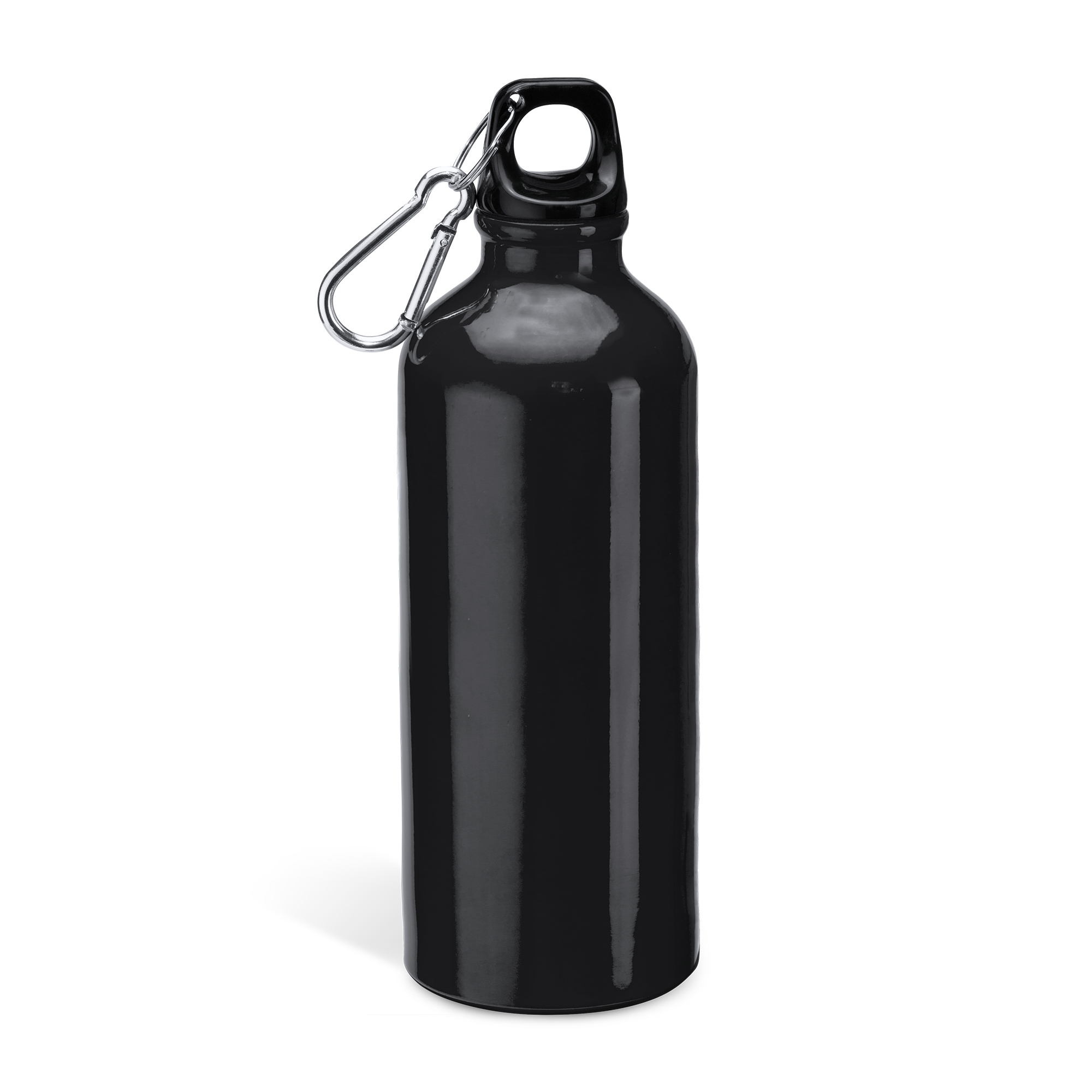 Trinkflasche aus Aluminium mit Karabinerhaken.