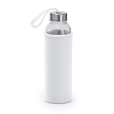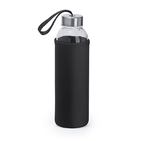 Trinkflasche aus Glas. 500ml. Farbige Hülle und Handschlaufe. Verpackung einzeln in einer Designbox.