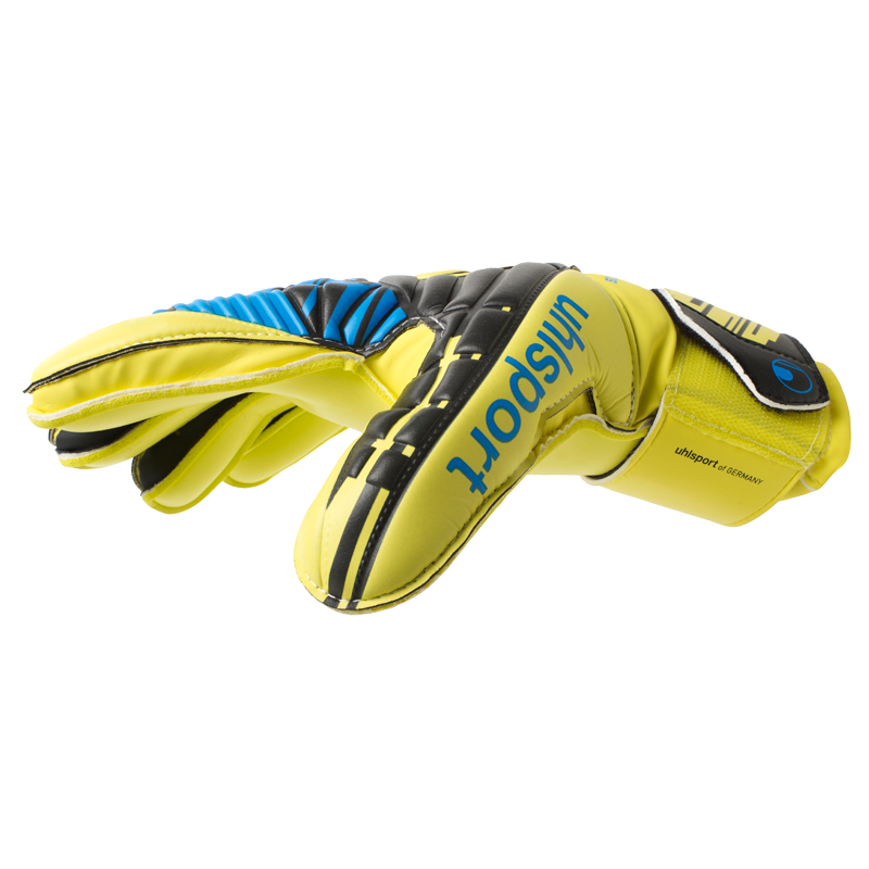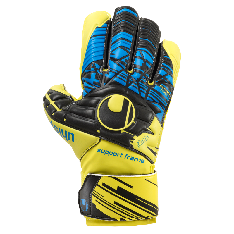 INNENHAND: SOFT Latex in LITE fluo gelb RÜCKHAND: Latex SCHNITT: klassischer Schnitt sorgt für größtmögliche Fangfläche VERSCHLUSS: umlaufende Lasche mit Namensfeld und Einschlupf mit V- Einschnitt HANDSCHUHKÖRPER: weicher PU mit Perforationen rund um die Finger für verbesserte Atmungsaktivität - integriertes SUPPORTFRAME-Element für verbesserte Fangeigenschaften dank zusätzlicher Fingerstabilisierung - Rückhand mit Prägung und SCHOCKZONE-Design Material: Latex 46% EVA 5% PU 21% TPU 13% Polyester 9% Nylon 6%