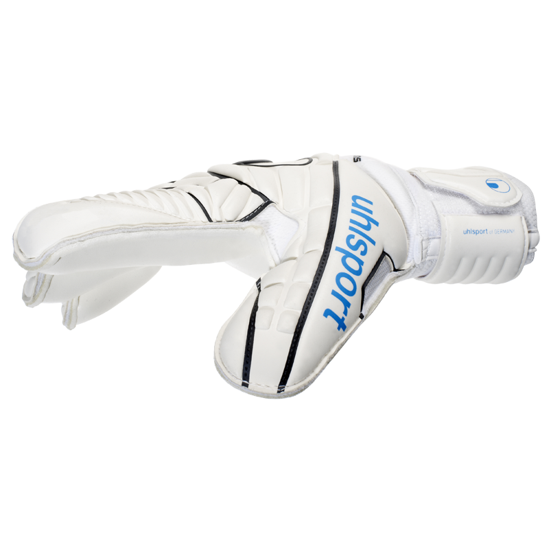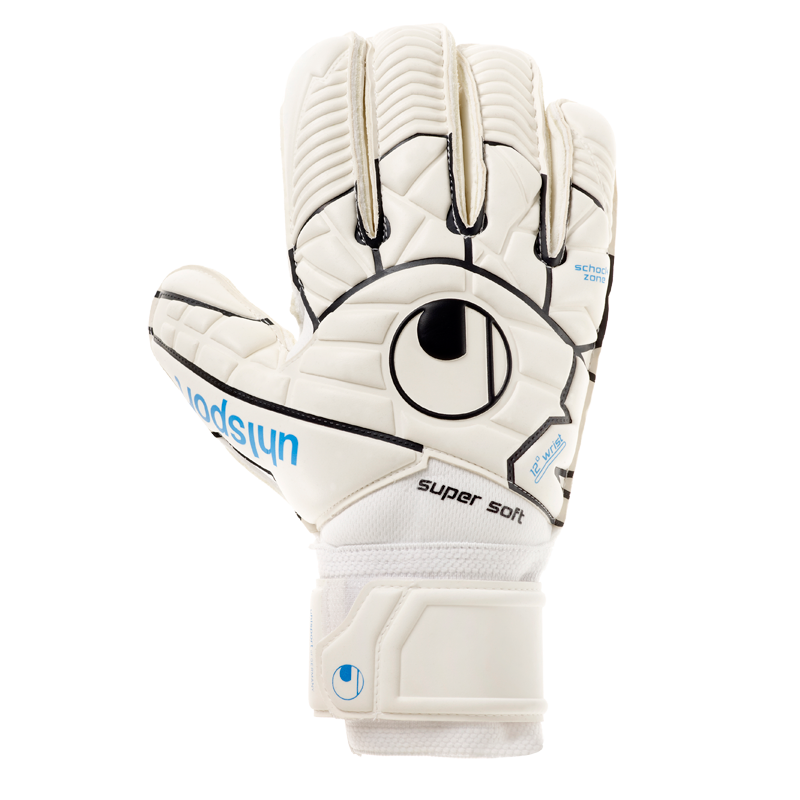 INNENHAND: exklusiver SUPERSOFTPLUS Schaum von uhlsport RÜCKHAND: Latex SCHNITT: Rollfinger-Schnitt HANDSCHUHKÖRPER: bestehend aus weichem Gewebe für maximalen Komfort VERSCHLUSS: elastische Bandage und umlaufende Latexlasche mit Namensfeld DESIGN: ELIMINATOR-Design in klassischer weißer Comfort Rollfinger-Farbkombination - äußerst flexibles und komfortables Handschuhdesign - Halblatex-Daumen für optimale Flexibilität Material: Latex 66% PU 4% Polyester 25% Nylon 5%